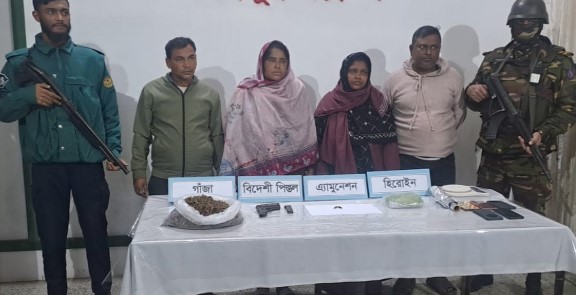 নিজস্ব প্রতিবেদক :: রাজধানীর পল্লবীর বেগুনটিলা বস্তি এলাকায় অভিযান চালিয়ে একটি বিদেশি পিস্তল, গুলি ও বিপুল পরিমাণ মাদকসহ ‘মাদক সম্রাজ্ঞী’ হিসেবে পরিচিত শাহজাদি ও তার তিন সহযোগীকে আটক করেছে যৌথ বাহিনী। আজ শুক্রবার (৯ জানুয়ারি) সকালে আটক ব্যক্তিদের পল্লবী থানায় হস্তান্তর করা হয়।
