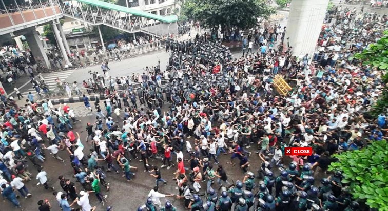 পুলিশের ব্যারিকেড অতিক্রমে করে শাহবাগে কোটাবিরোধী আন্দোলনকারীরা
