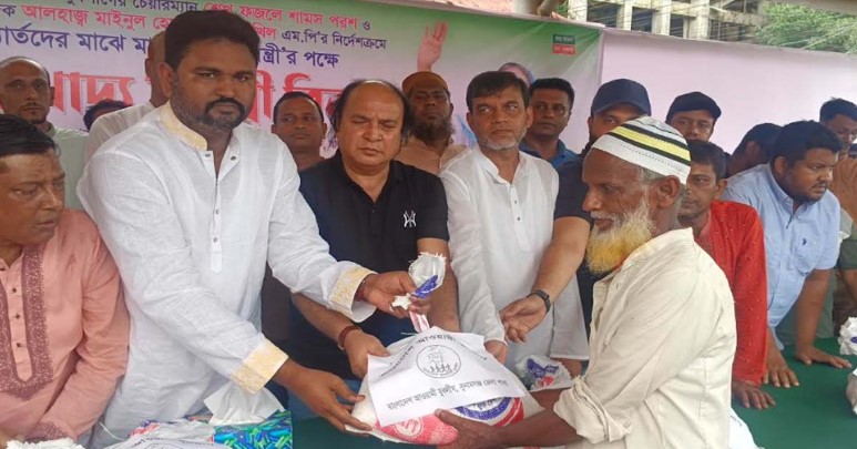 সুনামগঞ্জে যুবলীগের উদ্যোগে বন্যা কবলিত মানুষের মধ্যে ত্রাণ বিতরণ