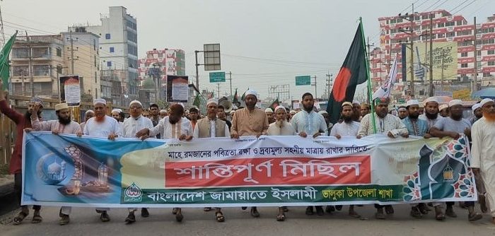 রমজানে দ্রব্যমূল্য নিয়ন্ত্রণে রাখার দাবিতে ময়মনসিংহের ভালুকায় জামায়াতের মিছিল