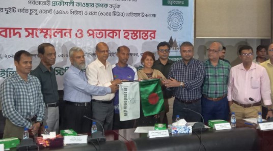 হিমালয়ের পর্বতারোহণ পর্বতারোহী রুপককে আইইবির পতাকা হস্তান্তর