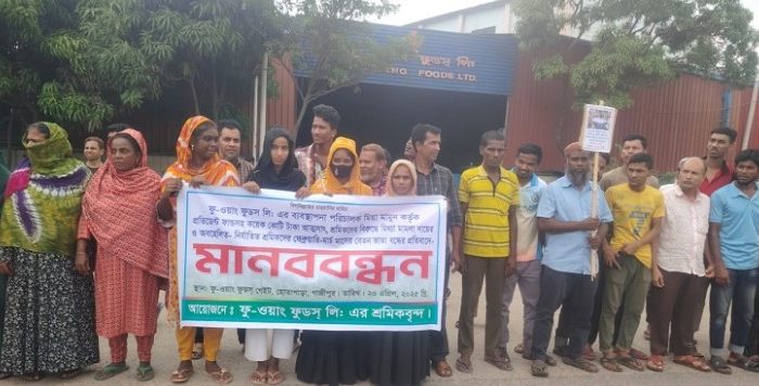 গাজীপুরে ফু-ওয়াং ফুডস্ শ্রমিকদের মানববন্ধন