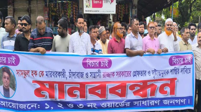 টঙ্গীতে বিএনপি নেতাকে হত্যাচেষ্টার প্রতিবাদে মানববন্ধন