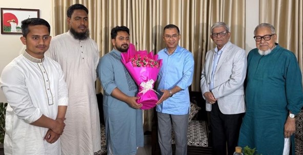 তারেক রহমানকে ফুলেল শুভেচ্ছা ছাত্রদল সভাপতি-সম্পাদকের