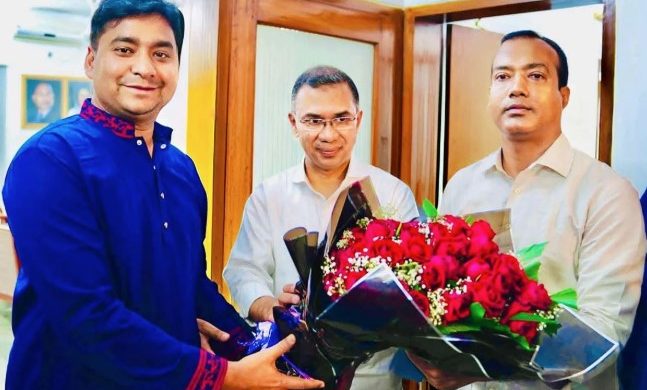তারেক রহমানকে ফুলেল শুভেচ্ছা ছাত্রদল সভাপতি-সম্পাদকের